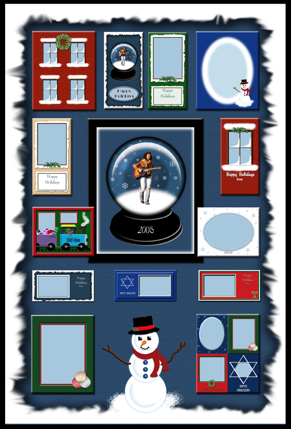 This cd includes Christmas, Hanukkah,Happy Holidays and Seasons Greetings. There are frames, borders and holiday 4x8 Vertical and Horizontal greeting cards. You can offer your client the advantage of having cards that are easily customized. There are also four different photo event cards, which are perfect for using to increase sales at a holiday event for take home photos of families, pets or even children visiting Santa.
