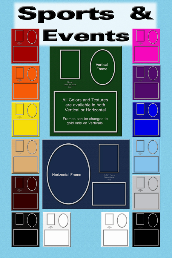 Parents of kids involved in sports are one dedicated group of parents. They spend many hours at practices, roadtrips and games. These are a group that almost always buys the sports portraits. This cd has a wide variation of team colors in both vertical and horizontal templates. There are three openings and a space to place the child's name, team name and the year. This is a real winner for location printing.