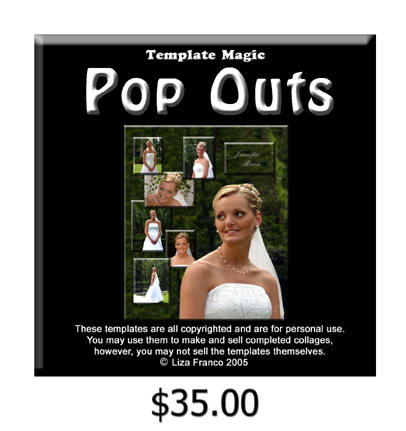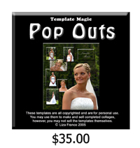 The Pop Outs cd is a very unique set of templates. This one is for the more advanced designer who desires a dimensional quality to their print. The technique involoved in creating pop outs is more difficult than that of the other cds, but the style it produces is a huge hit with customers purchasing portraits. Watch your sales increase with the use of this product.